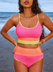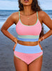 Design Features: Color Block Bikini Top with Adjustable Spaghetti Straps and Removable Padded Bra, Scrunch Ribbed Fabric, High-Waisted Bikini Bottom with Tummy Control and Full Coverage, Pull-On Closure