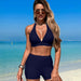 Design Features: Triangle Bikini Top, Tie-Up, Halter Style, Removable Pads, Low Rise Bikini Bottoms, Skirted Detail, Quick-Drying & Stretchy Fabric
