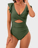 Introducing the Ruffle Sleeve Cut-Out Ruched One-Piece Swimsuit, a stylish and playful choice that combines feminine flair with modern design. This swimsuit is perfect for making a statement during your beach or pool outings.